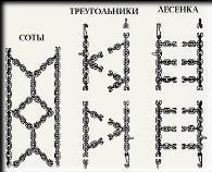 Цепипротивоскольжения на колёса автомобилей (грузовых и легковых) в трёх основных исполнениях - лесенка, ромб и соты. По эффективности применения они идентичны, отличаются способом плетения.